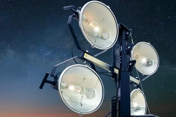 Compact vertical mast light tower with a Kohler diesel engine. The adjustable vertical mast extends 23 meters and can rotate 360 degrees for optimum lighting flexibility.