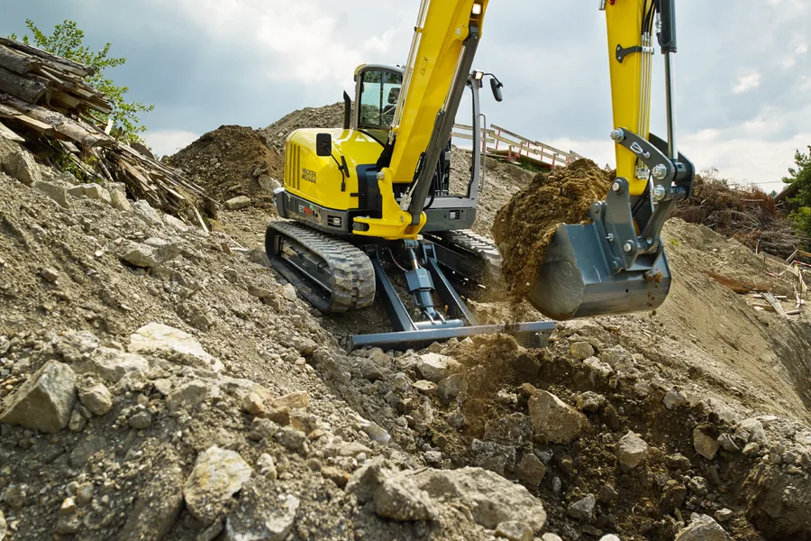 - With 3-point kinematics, the conventional bucket linkage has been taken to a new level. This "3-bolt" design extends the bucket's angle of rotation to 200 degrees - 10% more than conventional bucket linkage. This increases the vertical dig depth as well as the digging forces. This eliminates the need to reposition the excavator as often, significantly increasing efficiency.