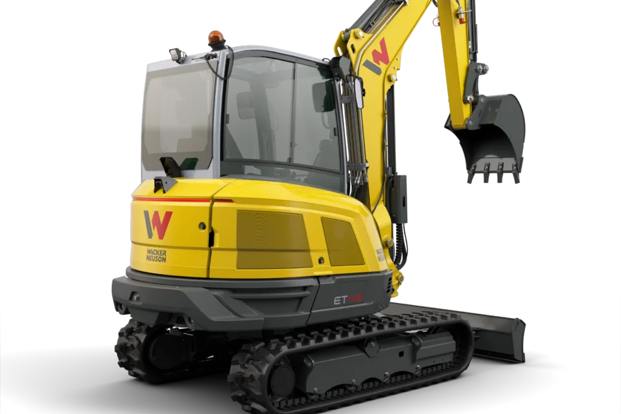 Full speed ahead: the ET42 mini-excavator combines proven technology with a large dose of innovation to lead the 4-metric ton class. It has the usual high lifting and digging forces, as well as fast work cycles. Thanks to modern technologies, emissions are reduced while efficiency is increased. The ET42's powerful engine meets Stage V emissions standards. The intuitive operating concept means this powerhouse is both user-friendly and comfortable for the operator, while offering an excellent view of the working area.