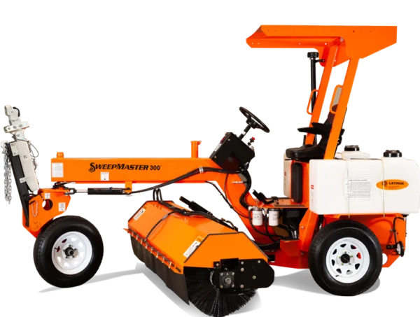 Two reasons why the SweepMaster 300 is so popular is it’s easy to tow and very operator friendly. Another reason is it can clean a variety of surfaces, it’s used as a gravel sweeper, construction street sweeper, and is also great for oily surfaces. It also enjoys a superb reputation as a parking lot sweeper rental. The SweepMaster 300 hitches up to the back of your truck in seconds with our advanced hitch/towing package, coming standard, and there’s no need to raise the front wheel off the ground while towing. Three powerful engine options available: Kubota 24.8 HP, Deutz 24 HP or Yanmar 24 HP. Features include a lower center of gravity, hydraulic manifold block, and a foot brake, along with options of variable broom speed, special paint colors and emergency and stop/turn/tail lights. To get the entire listing of Standard Features, Key Features and Specs, or download a brochure, just click on the buttons below: